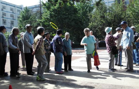 不少老同志们对这个新奇的项目产生了浓厚的兴趣,比赛之余还互相交流经验和技巧,比赛场地充满了祥和欢乐的气氛。