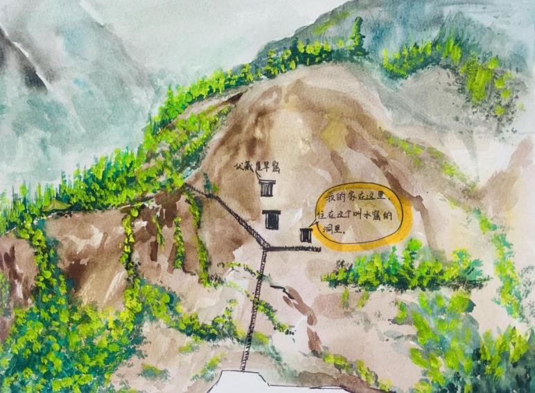 我的家海拔2000多米,位于崖壁右侧水窟中。洞深5米,宽3米,洞口处的“石缸”直径0.85米,深1.5米,不知何人所建。伏羲崖由古近纪寺口子组的红褐色砂砾岩构成,这类岩石疏松易凿,古人常用来开凿石窟。来自李四光创建的地质力学研究所的地质学者们曾来这里考察,称这里记录了六盘山数亿年的沧桑巨变。