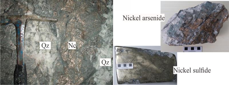 龙华镍钴矿床以高品位脉型镍钴矿化为特征,矿体主要由镍钴砷硫化物组成。金秀矿和贵祥矿的发现,说明龙华镍钴矿床的形成与多期岩浆热液作用有关,含镍矿物主要由早期矿化组成,该过程形成的矿物组合以红砷镍矿为主,含少量砷镍矿、辉砷镍矿,晚期成矿作用含有较多的含钴辉砷镍矿和辉砷钴矿,同时,热液流体中铋和锑元素的含量不断增加,铋和锑取代辉砷镍矿中的砷形成金秀矿。