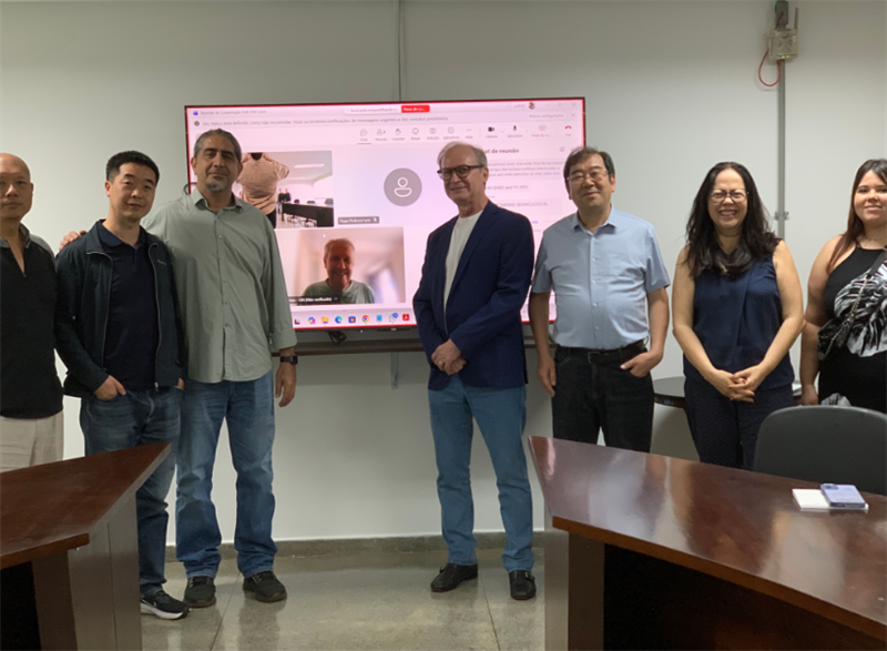 研讨会结束后,出访团赴巴西利亚大学,与该校副校长Marcio Muniz de Farias教授、地球科学研究所所长Welitom Rodrigues Borges教授等团队,就联合申报的科技部重点研发计划项目“戈亚斯古陆块金镍成矿系统探测与对比研究”展开细节磋商。双方围绕大地电磁与宽频地震设备调配、野外台站建设标准、数据共享、联合发表论文等关键问题达成一致,巴西国家观测台也通过线上方式参与讨论并表示将积极参与项目实施。