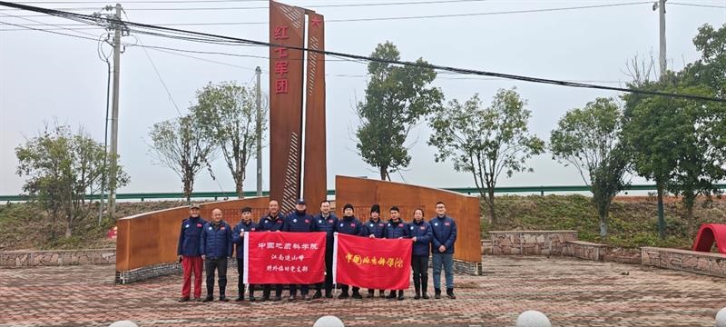 近日,中国地质科学院深部矿产勘查理论与技术研究团队党支部结合野外工作,在江西省抚州市资溪县高阜村红七军团指挥部旧址,开展了以“追寻红色足迹、锤炼过硬本领、赋能找矿突破”为主题的党日活动,旨在推动党建与业务深度融合,传承红色基因,凝聚勘查技术创新发展的奋进力量。在野外工作月余的党员群众通过实地参观学习、现场交流研讨,在红色教育中筑牢党性根基,在业务对标中明确奋进方向。